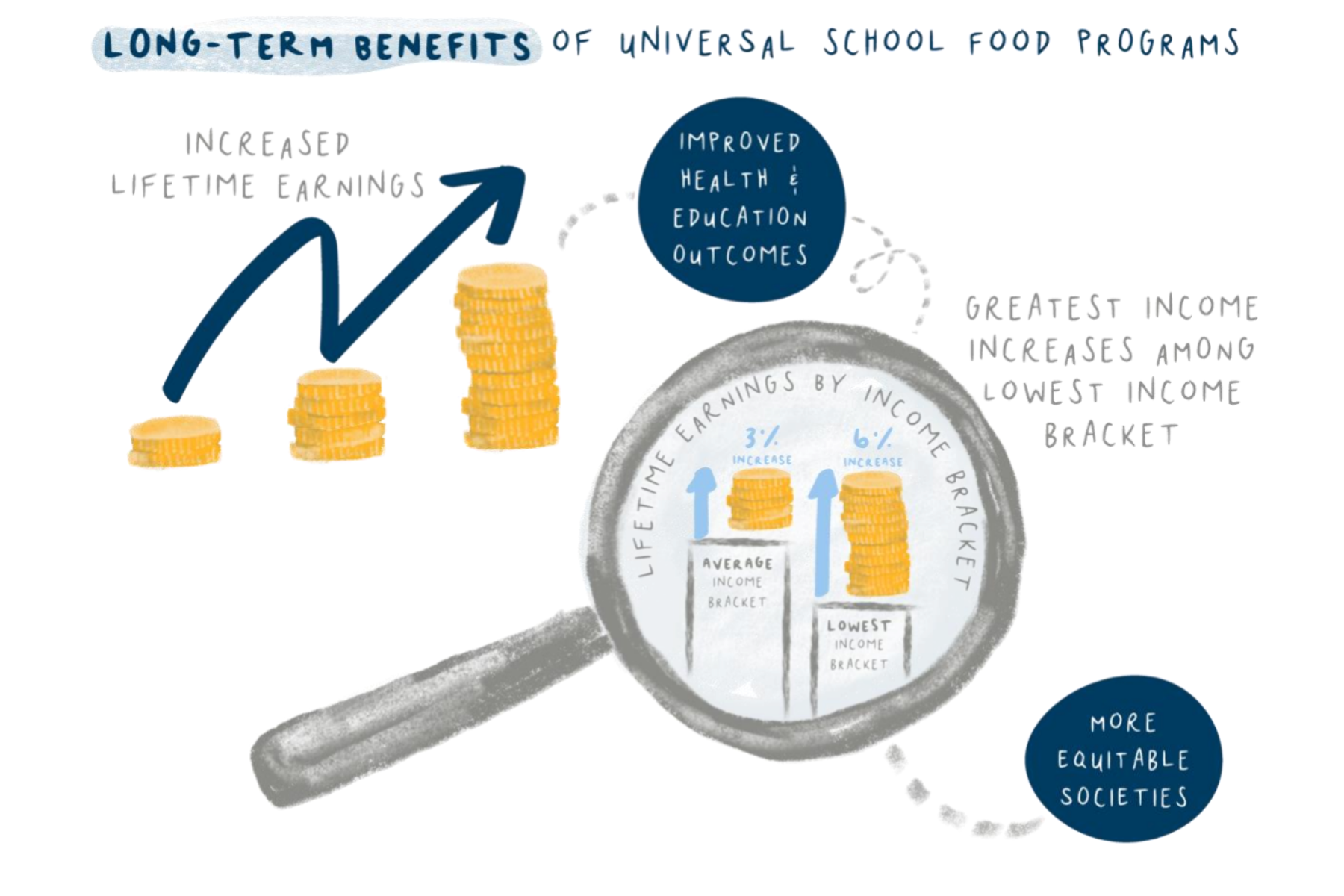 Learn more about the research-backed benefits of school food programs below. Graphics from The Economic Rationale for Investing in School Meal Programs for Canada (Ruetz et al. 2023)