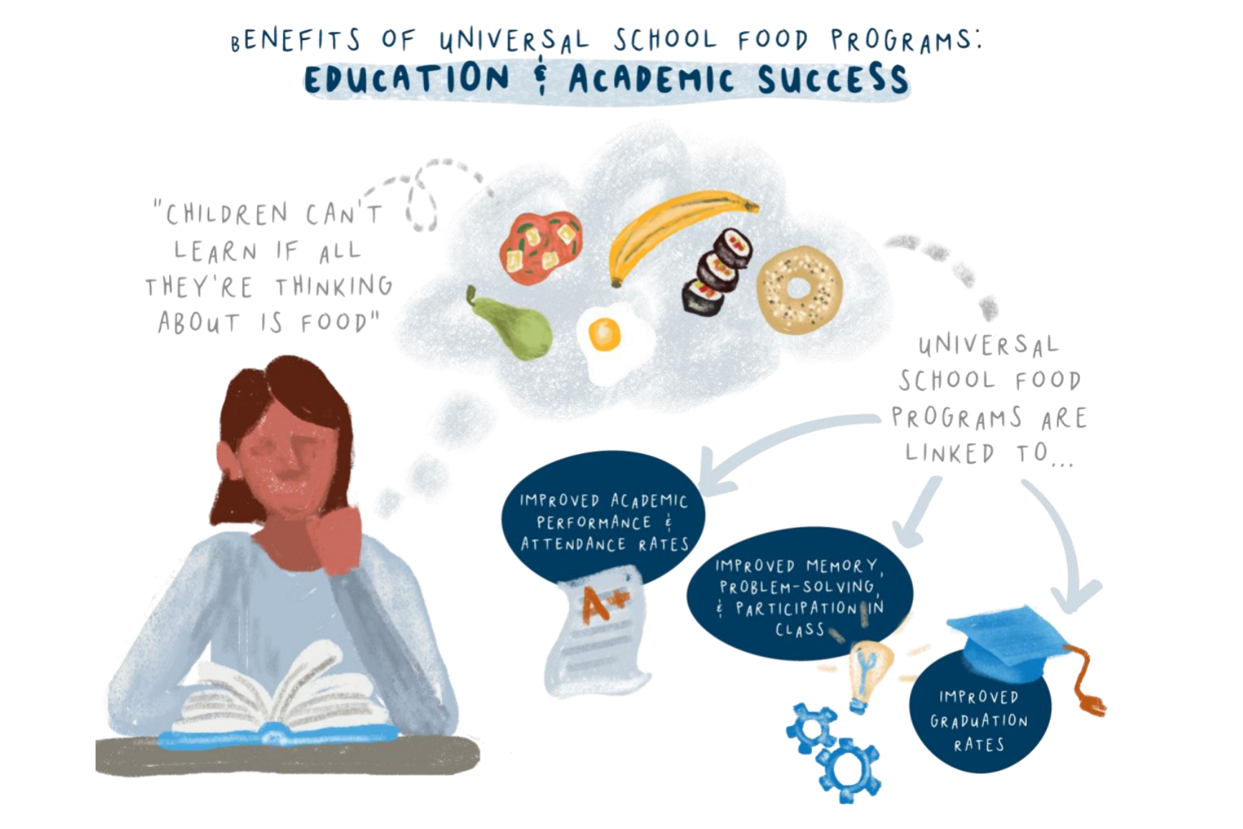 School food programs do far more than meet children’s immediate food needs. They provide a number of academic, health, social, and economic benefits to individual students and their communities.